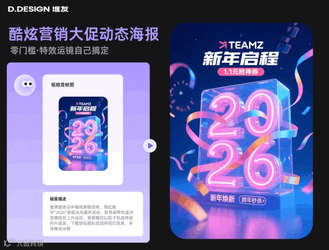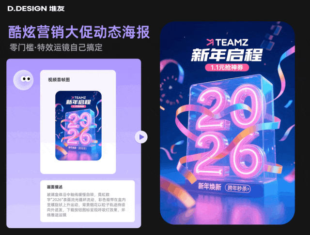你的海报还是静态的?那你就输了🚀 堆友能帮你生成“会动”的促销海报!旋转立方、飘动气球、流光文字…视觉炸裂,引流利器!双11活动页、新品发布,用动态视频当然更吸睛!