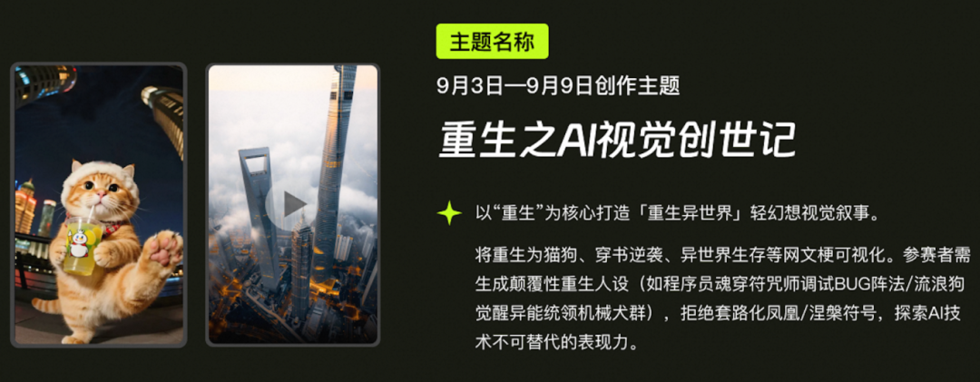 创作主题将以周为单位进行更迭,需围绕官方制定的主题展开相应图片、视频创作。本周主题以「重生」为突破口,邀请你充分展开联想,借助宠物、文学、梦境、经典、国风等元素提笔升花,开启破次元的惊喜演绎。
