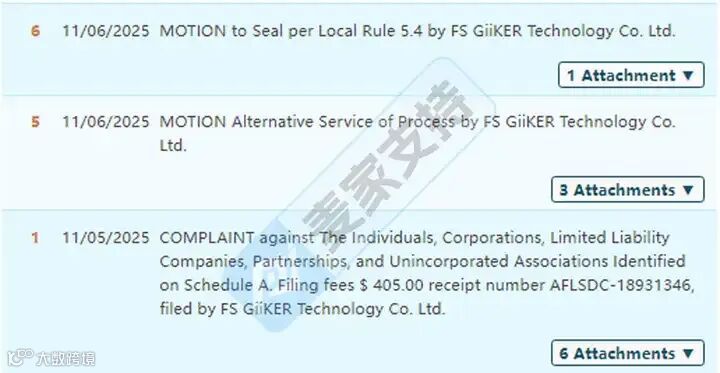本案是GS2 LAW PLLC律所代理中国企业FS GiiKER Technology Co. Ltd.在佛罗里达州发起的版权维权案件,涉案版权于2025年9月15日获得美国版权认证,版权号为:VA 2-463-567和VA 2-465-098,涵盖GiiKER井字棋的全方位展示图。除此之外,FS GiiKER Technology Co. Ltd.在美国还注册有GiiKER 文字商标,涵盖射箭器材、计算机硬件、玩具以及培训课程等类目,未经授权使用,均会面临TRO冻结风险,目前该案件处于前期立案阶段,暂未获批TRO临时限制令,有上架过相关品类的卖家需尽快排查下架。