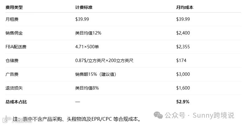 2025年亚马逊开店总费用(北美站月销2万美金示例)