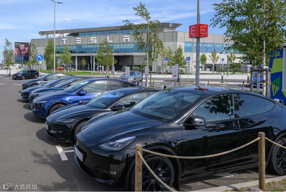 车辆停在柏林勃兰登堡州特斯拉超级工厂前。(帕特里克·普莱乌尔/图片联盟来自盖蒂图片社)