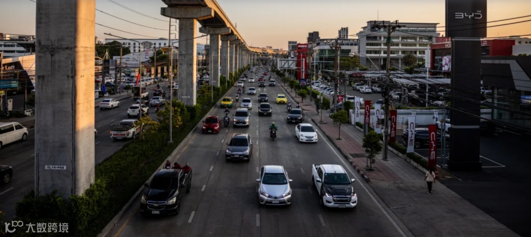 比亚迪电动汽车经销店出现在泰国曼谷。 劳伦·德西卡/盖蒂图片社