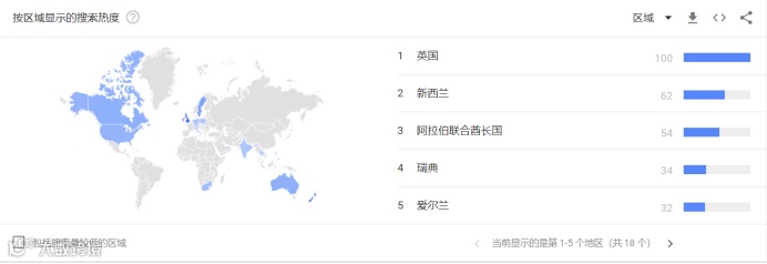 据谷歌趋势数据显示,近30天内,英国、新西兰、阿拉伯、瑞典、爱尔兰、美国等18个国家对LED蜡烛灯的搜索热度不断,其中在英国LED蜡烛灯搜索热度达100,新西兰达62。由此可见,在海外LED蜡烛灯需求量和关注度非常高。