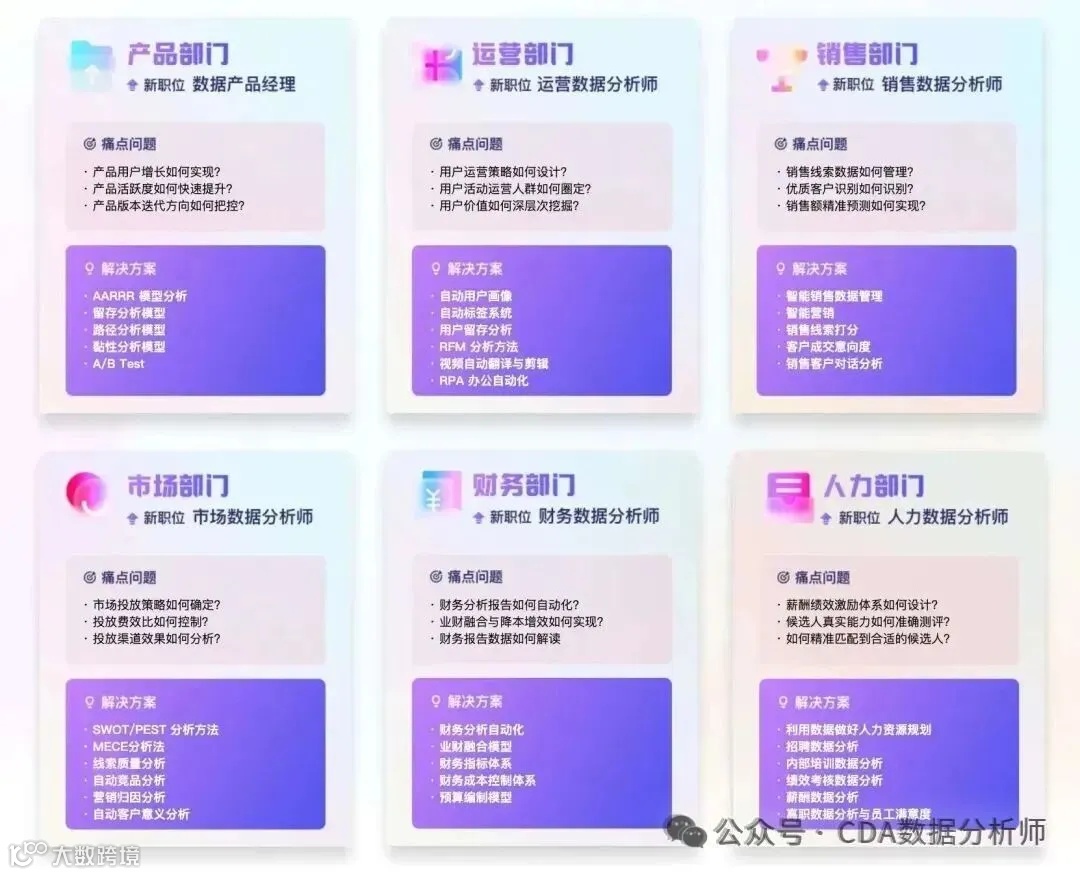 作为专注于数据科学领域课程研发17年的培训机构, CDA数据分析师总结并实践出了一套行业、企业、市场认可的“全栈数据人才成长体系”,从数据分析、数据挖掘、人工智能等方向为学员提供更科学、系统的学习线路和课程,助力学员实现持续的职场岗位晋升和薪酬增长。