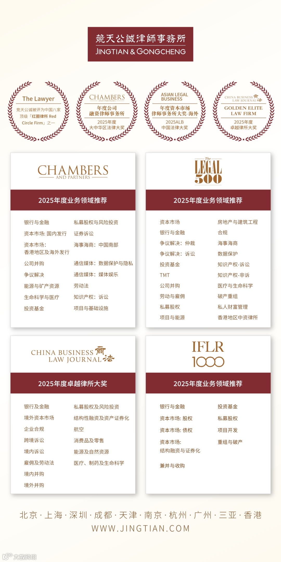 田律师曾荣膺“年度LEGALBAND竞争法15强”“年度LEGALBAND客户首选合规多面手15强”“China Business Law journal《商法》100位中国业务优秀律师”等多项专业奖项。