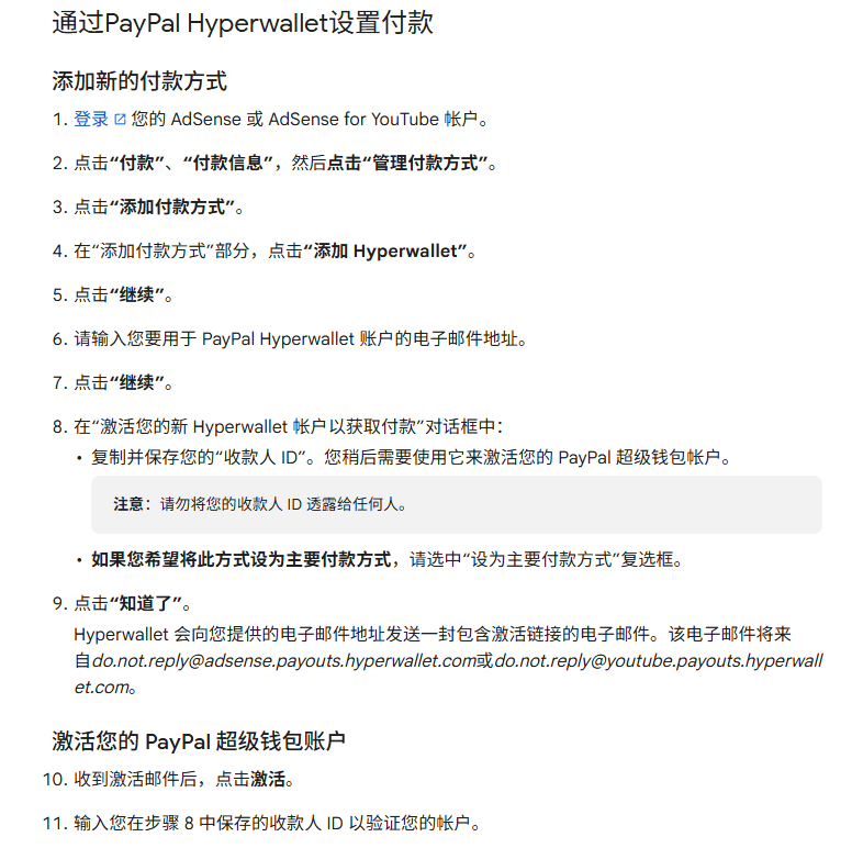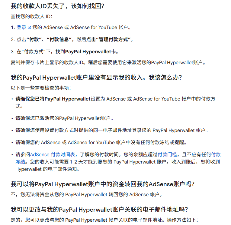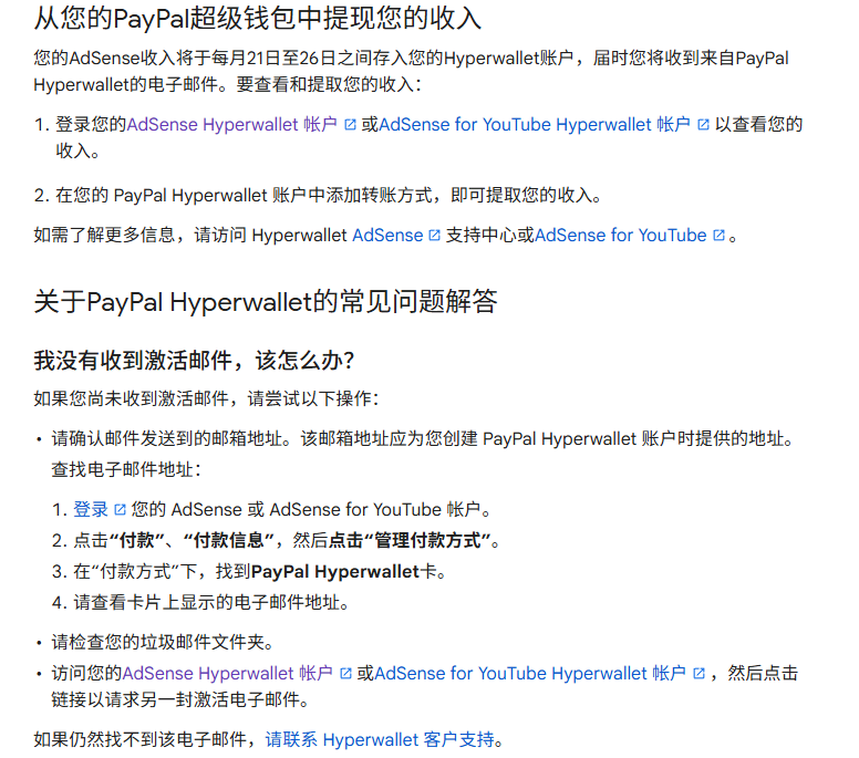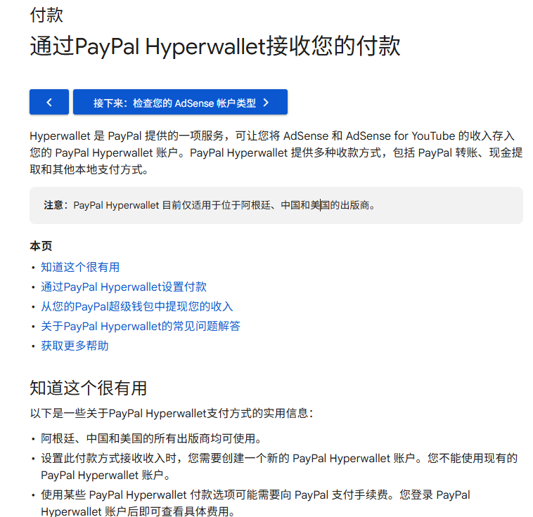 总之呢,这是10月30号才推出的一项国内可用的服务,目前小编还没有偿鲜,因为收adsense的款是使用的招商银行的卡来收的,暂时没有使用PayPal Hyperwallet的意愿。感兴趣的搞国外网赚被动收入的小伙伴可以试试。