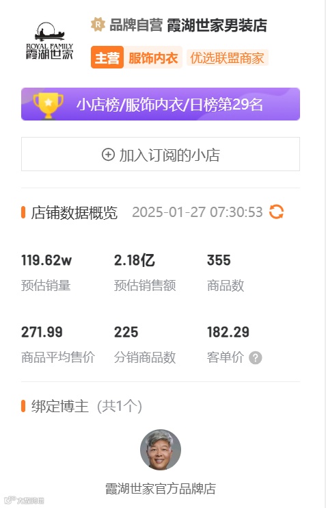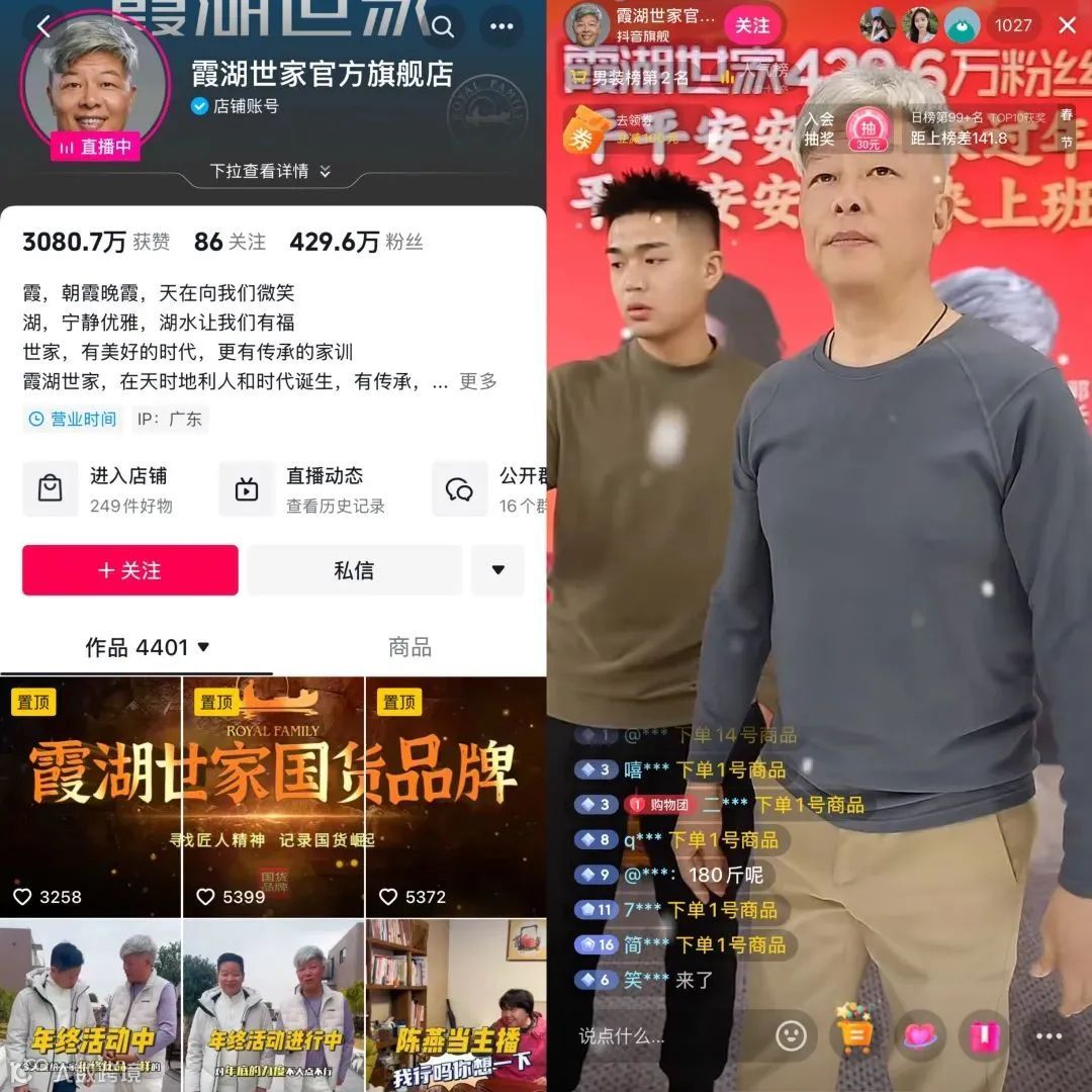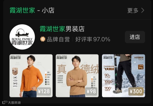 2025年,男装品牌“霞湖世家”在微信视频号异军突起,成为平台新晋“男装一哥”[k]。