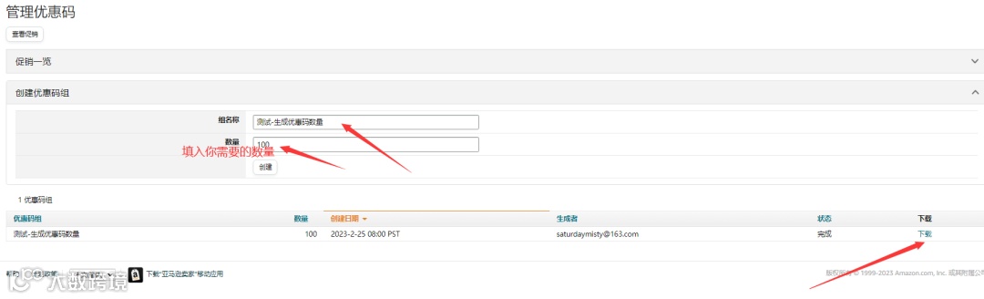 选定之后,点击查看促销-管理优惠码,填入你所需要的数量,即可生成对应数量的优惠码,如下图所示: