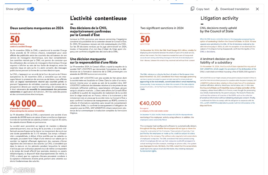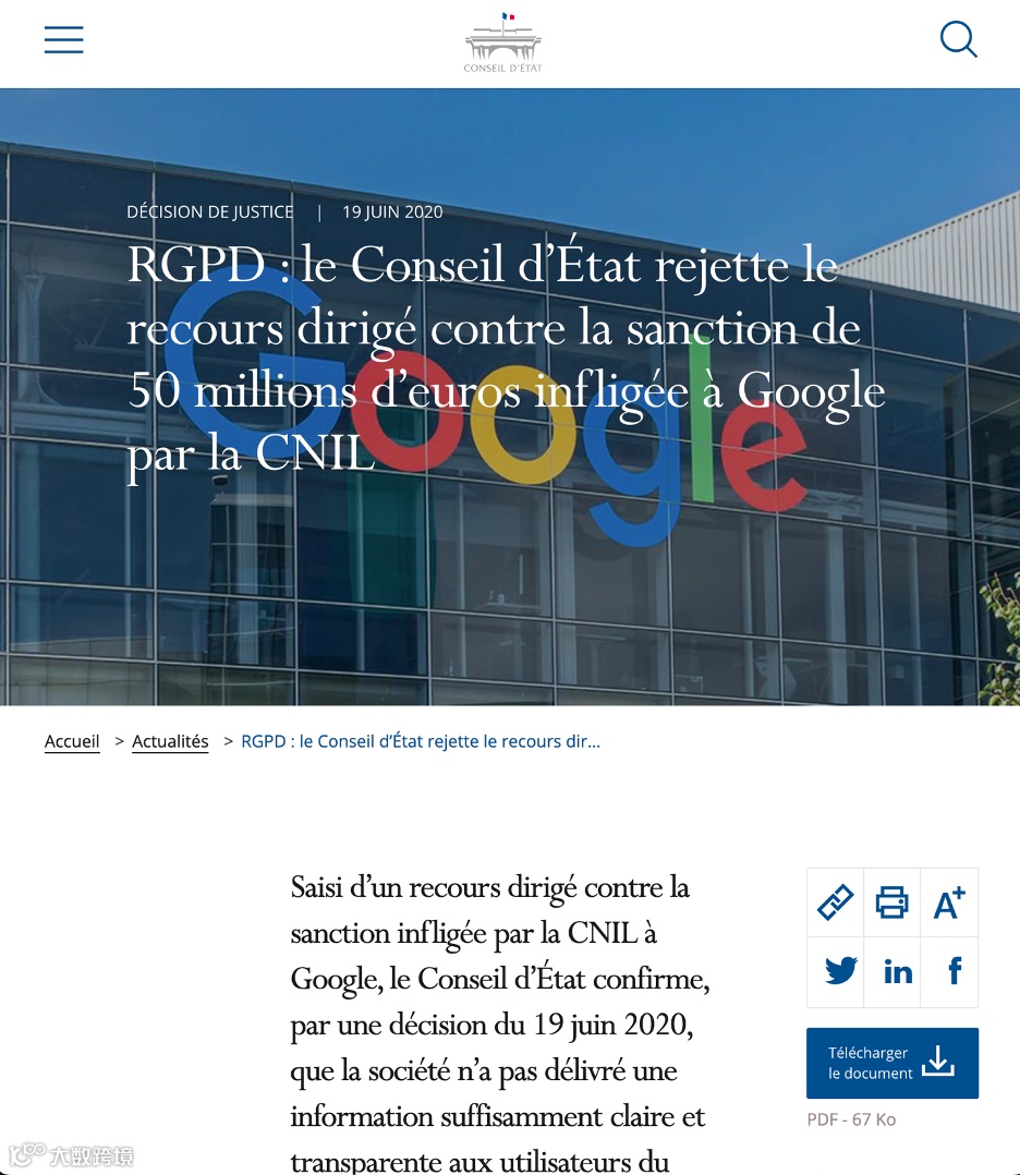 针对谷歌的5000万罚款案中,法国国务委员会(Conseil d’État) 发布官方声明明确上诉被驳回,因此理论上在法国也是存在罚款确认,虽然不是由司法机构作出。但是剩下4起来自法国的处罚都没有找到由国务委员会作出的声明,也有可能还在程序中尚未作出。翻看CNIL的报告,可以发现关于国务委员会确认部分的信息高度聚合,无法识别个案,在这一点上差评CNIL。