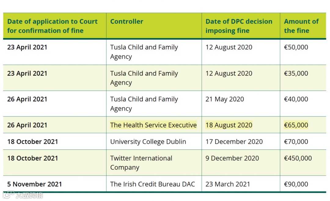 类似地,德国的案件也很难找到罚款作出后的司法或行政确认信息。还有3起爱尔兰的处罚落入10-20名区间,目前均未回收。