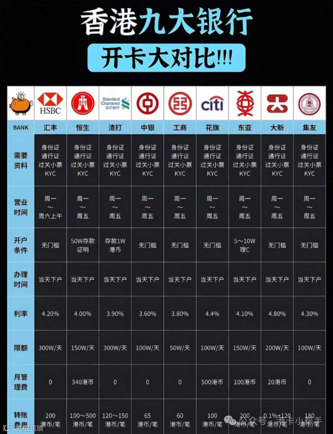 以上是港卡小帮手整理的目前市场上比较主流和热门的一些银行介绍,客户朋友办理的比较多,当然还有其他的一些银行没有全部介绍完,大家可以关注公众号:港卡小帮手,里面有详细的介绍。每个银行都有各自的优势,可以根据自身的情况做选择,港卡办理是有窗口期的,政策有时候变化的比较快,名额有限,基本上先到先得,后面就看政策的宽松程度了。