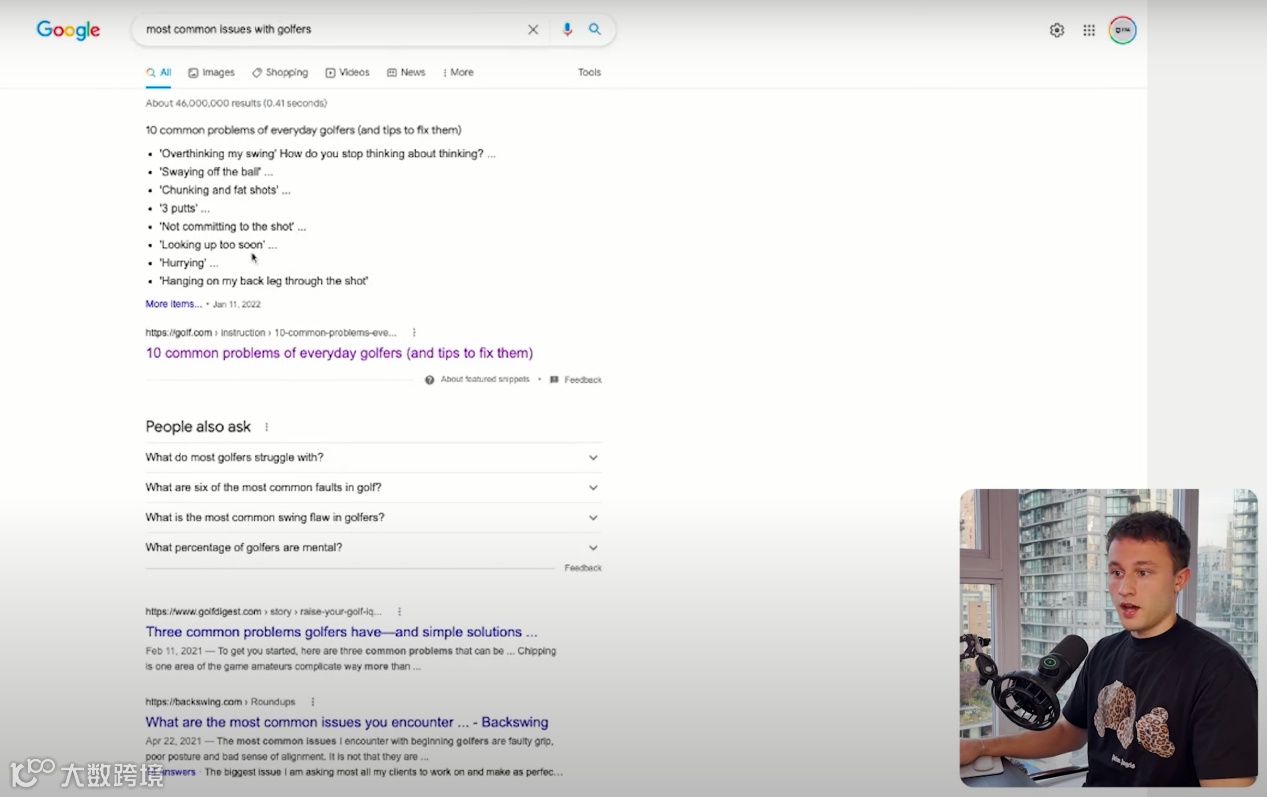 用的关键字是:most common issues with golfer。 “most common issues with ”这个关键字是不是可以和其他类目和消费人群组合使用,用来探索我们想做的类目的人群需求。