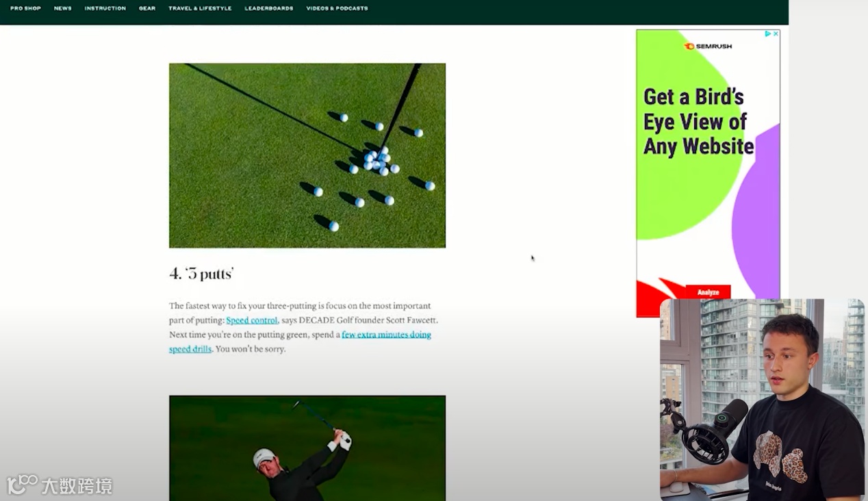 在首个链接的文章中,UP主挑出了其中一个高尔夫玩家多见的问题:推杆入洞—putting。