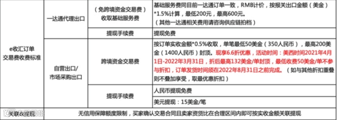 e收汇订单收费标准