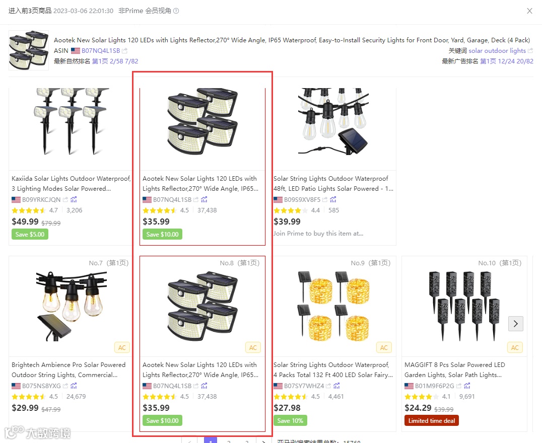 从图中我们可以看出,这个广告位置实际上是位于一个4.7星和一个4.4星的listing中间,两个产品与自己的产品都有一定的差异性,在评论数量上是自己的产品更有优势,从功能和价格上实际上自己的listing也有一定的优势。