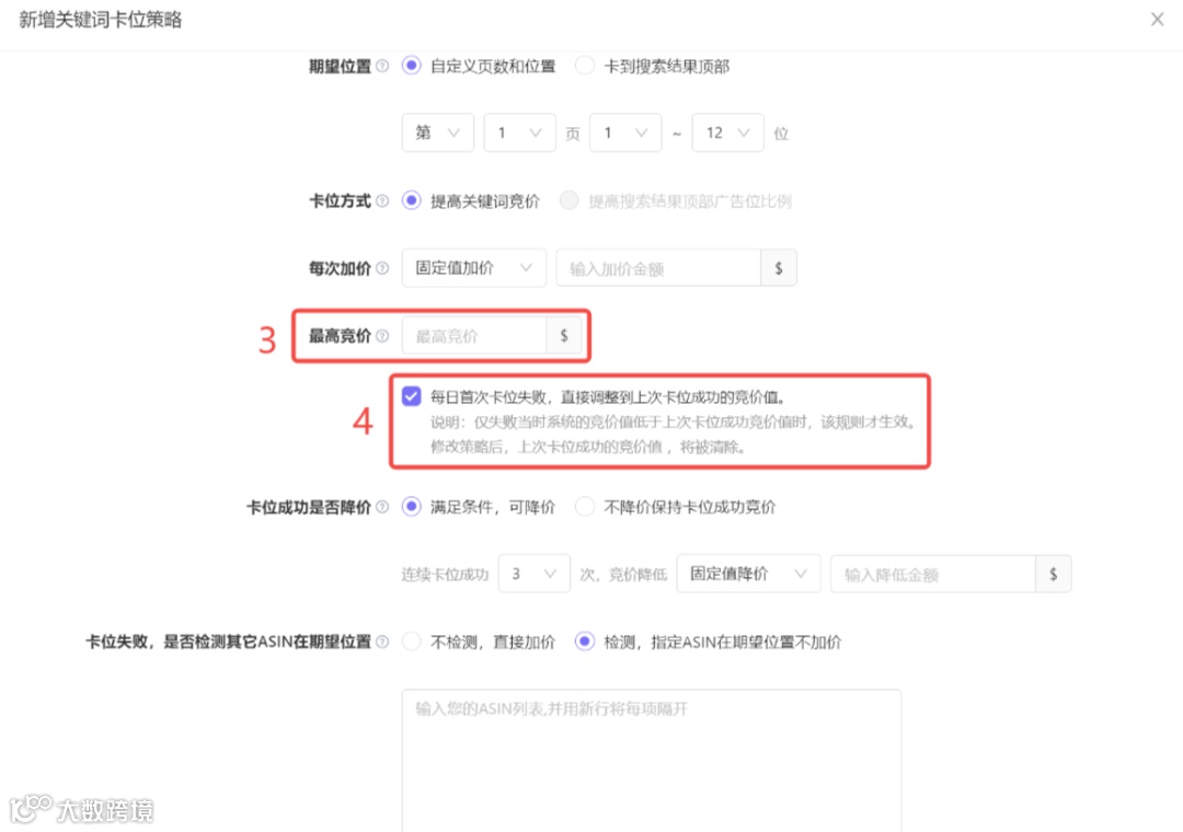 在成功判断了一个关键词最优质的广告位置之后,最重要的就是用最低的成本来卡柱最优质的广告位置,因此,可以直接使用优麦云的关键词卡位功能来解放我们的双手,如下图: