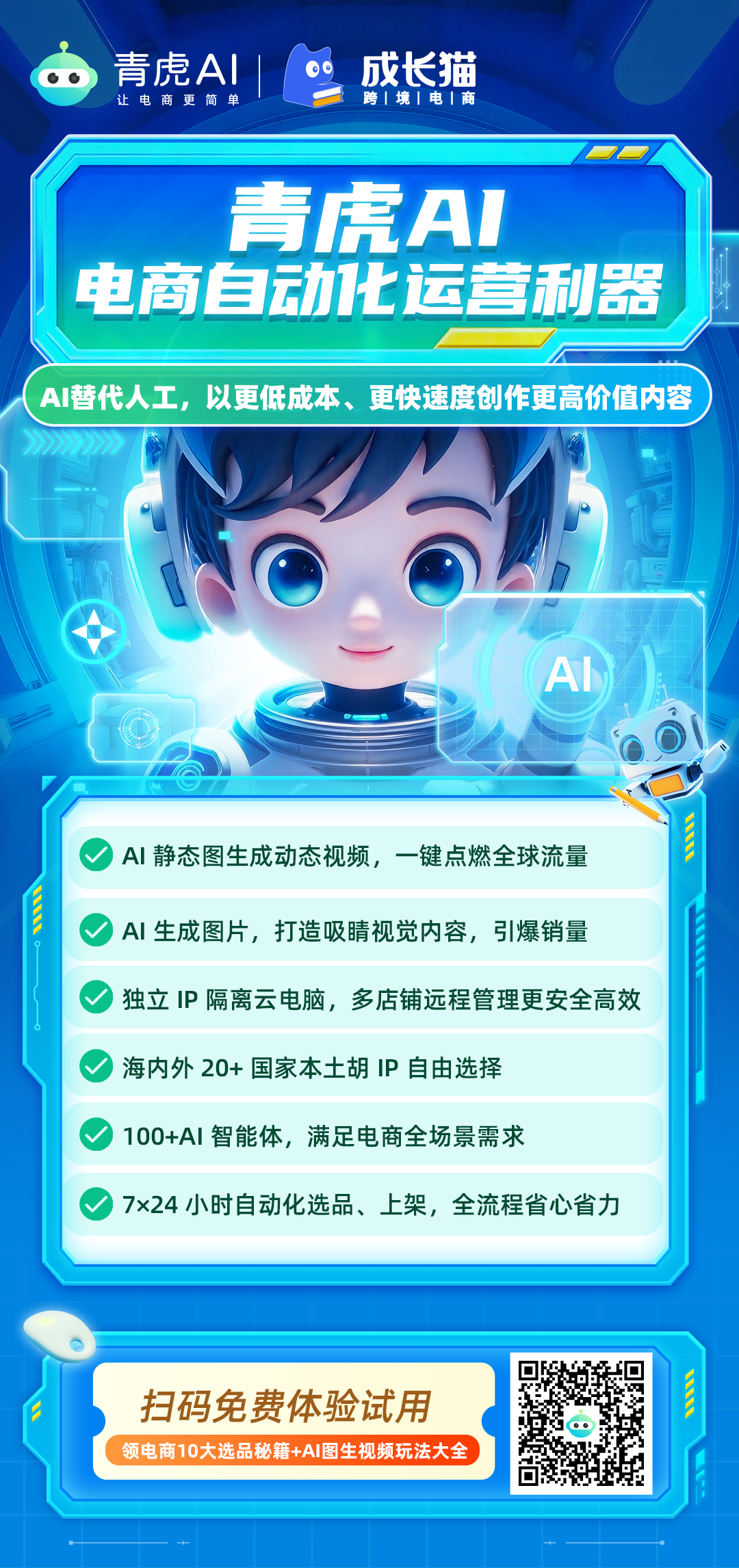今天成长猫我就分享三个我们自己这边也在用的工具,给大家稍微介绍一下,分别是在TK上帮助对接达人的工具,虾皮店铺数据分析工具,以及自动化运营的AI工具。那有需要的可以直接下划找到对应的海报,扫码拿来试用。