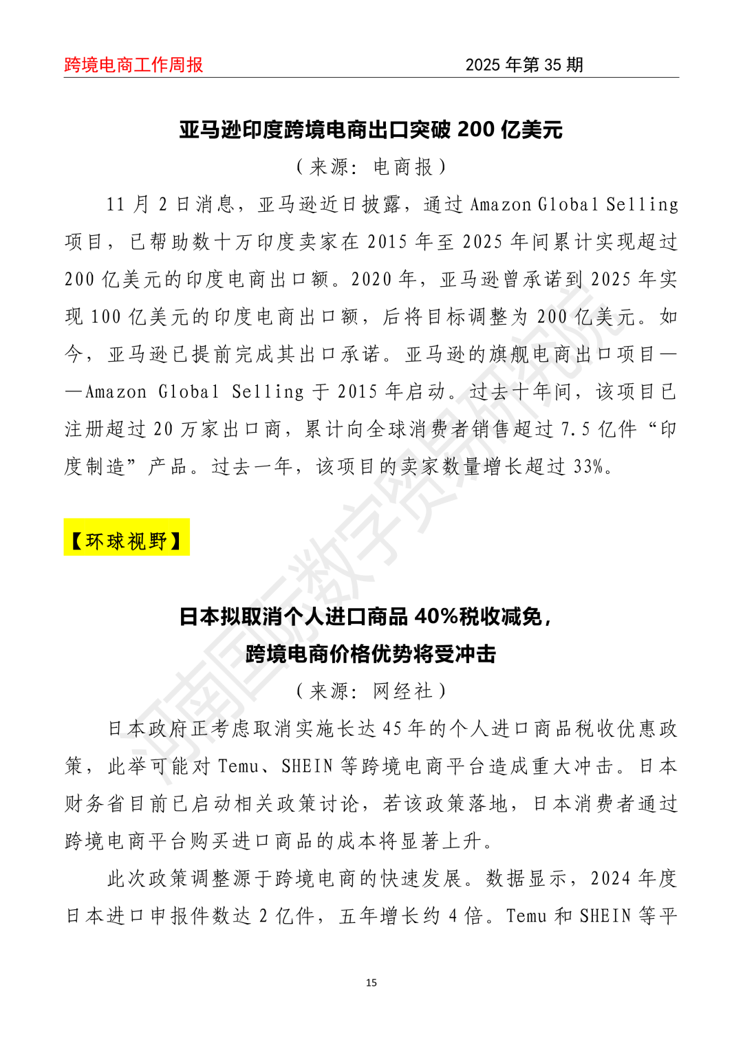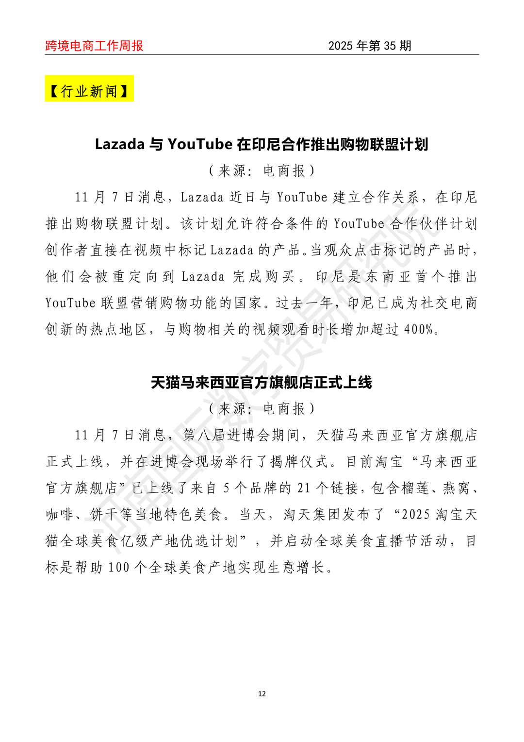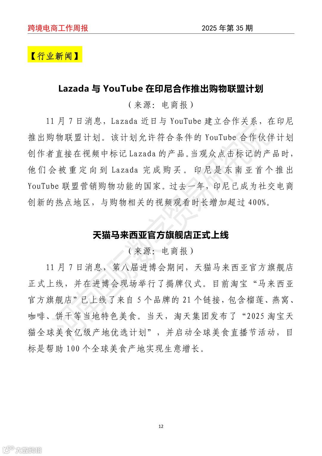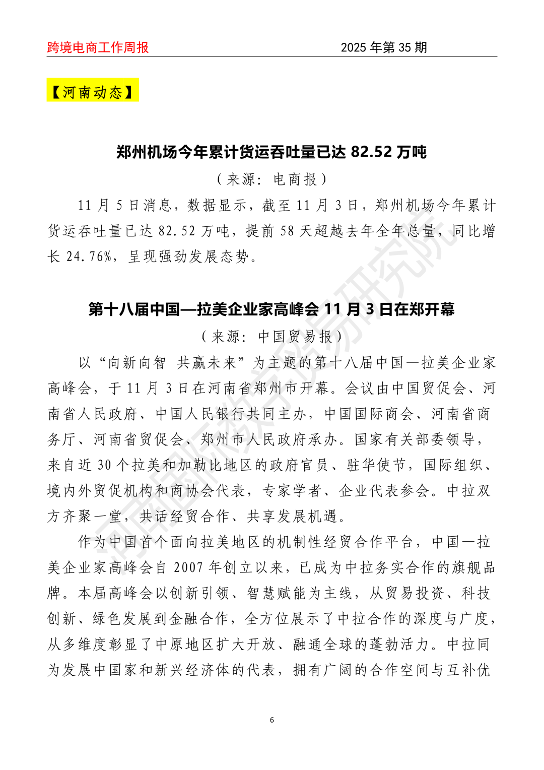2025年第35期(2025/11/01—2025/11/07),跨境电商领域又发生了哪些事件,以下是河南国际数字贸易研究院为大家带来的本周外贸进出口、跨境电商平台、服务商及各地跨境电商最新动态回顾。