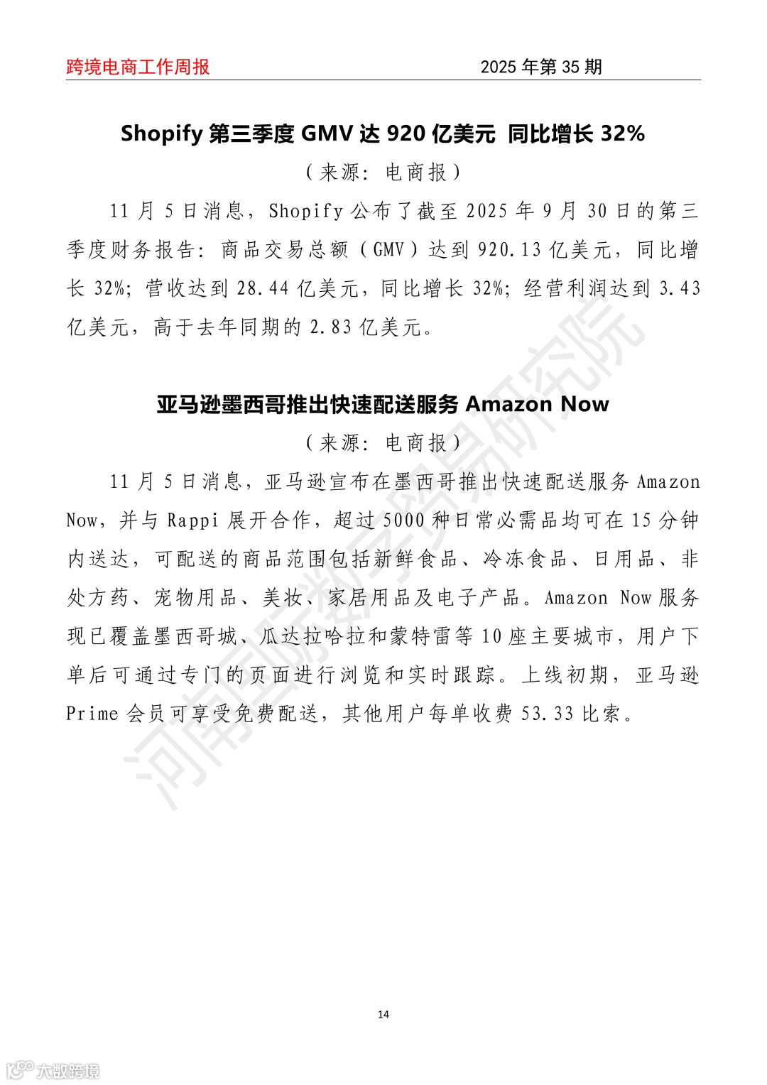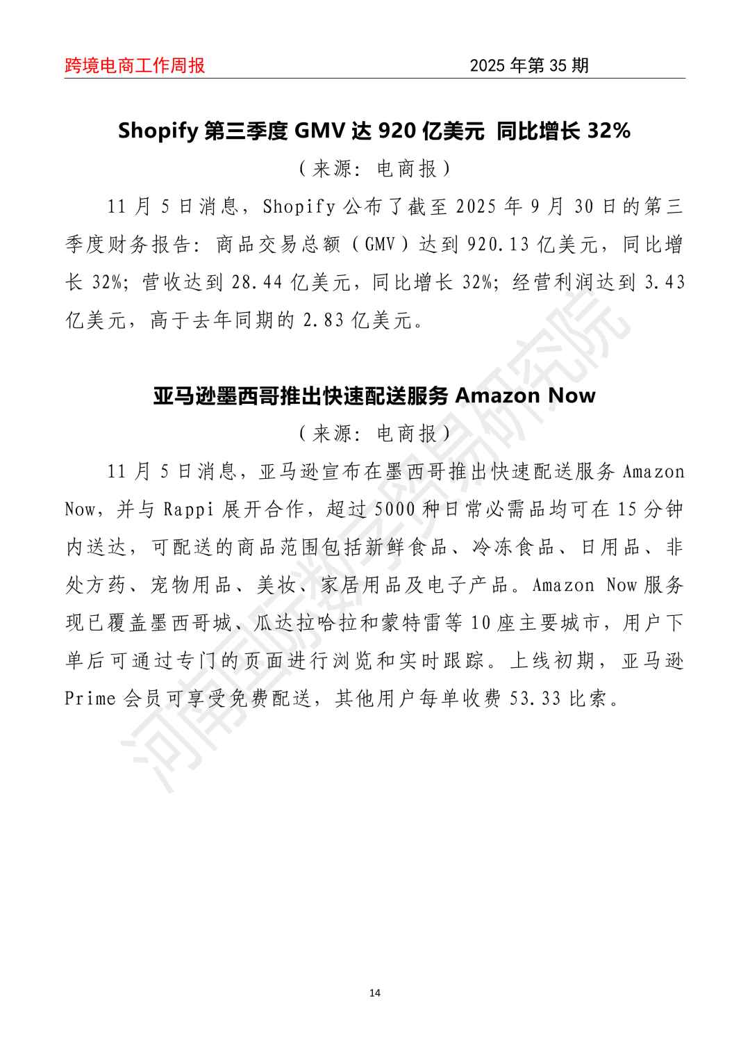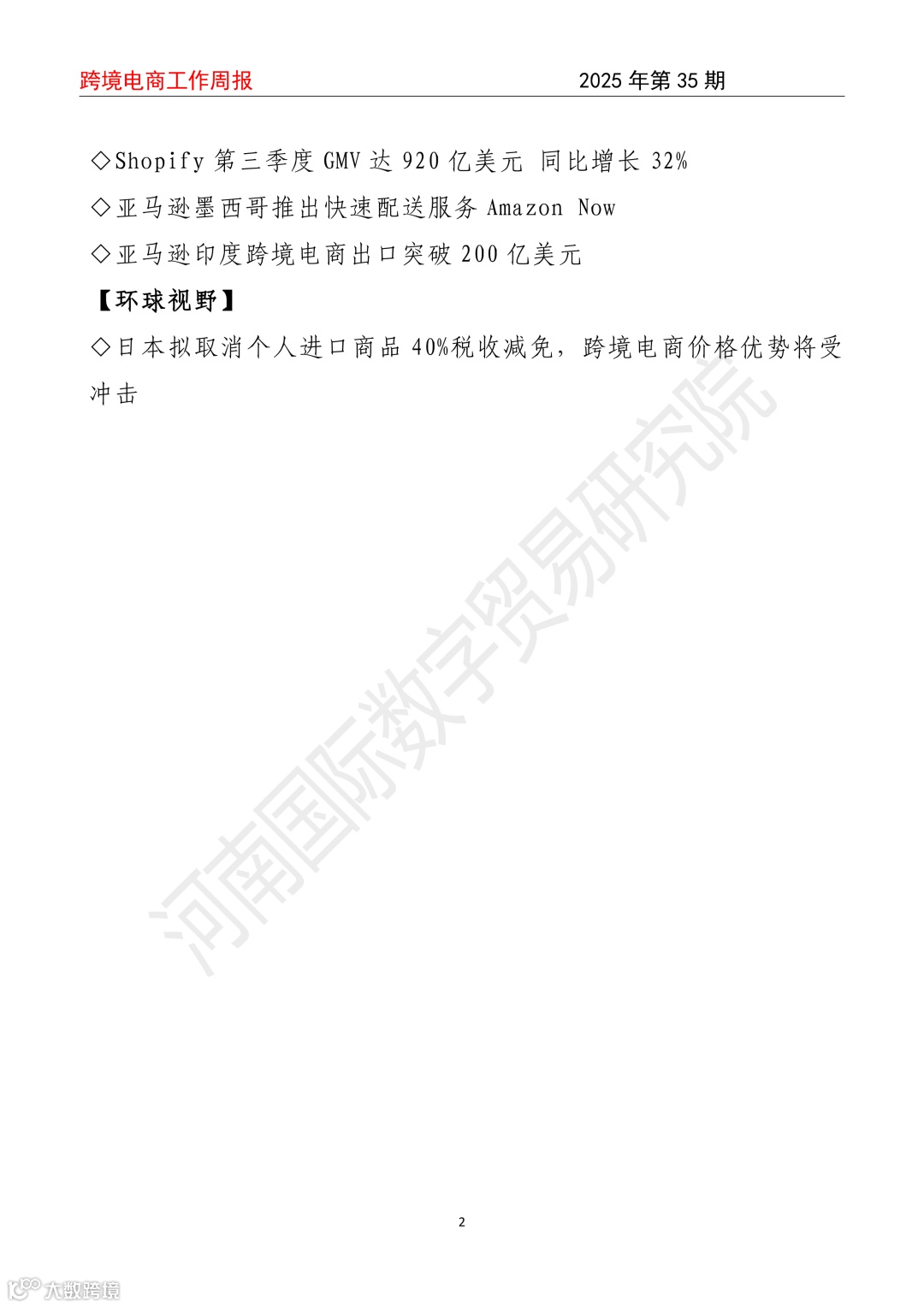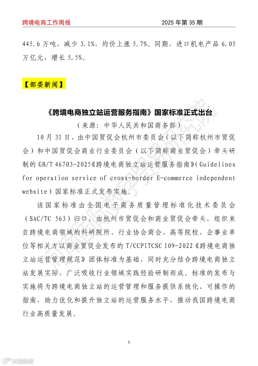 2025年第35期(2025/11/01—2025/11/07),跨境电商领域又发生了哪些事件,以下是河南国际数字贸易研究院为大家带来的本周外贸进出口、跨境电商平台、服务商及各地跨境电商最新动态回顾。