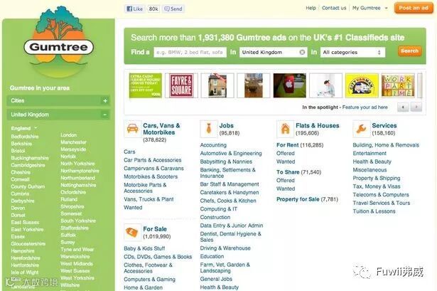 Gumtree成立于2000年,仅十多年就成为目前英国第一的分类广告网站,它家除了租房信息之外,还有二手车、二手物品等门类。一言以蔽之,那简直就是咱们国内58同城的英国版。