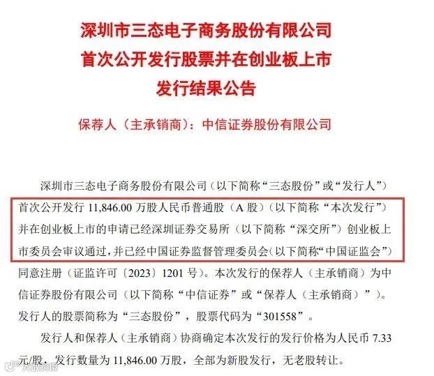 9月11日,三态股份发布通知公告称,公司已通过深交所创业板上市委员会的审议,并获得中国证券监督管理委员会的注册许可,首次公开发行股票并在创业板上市