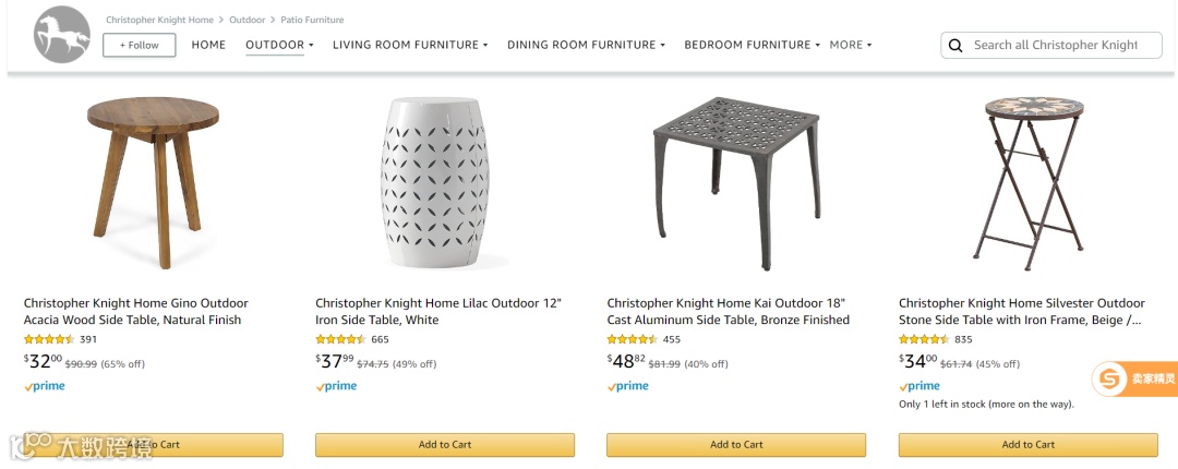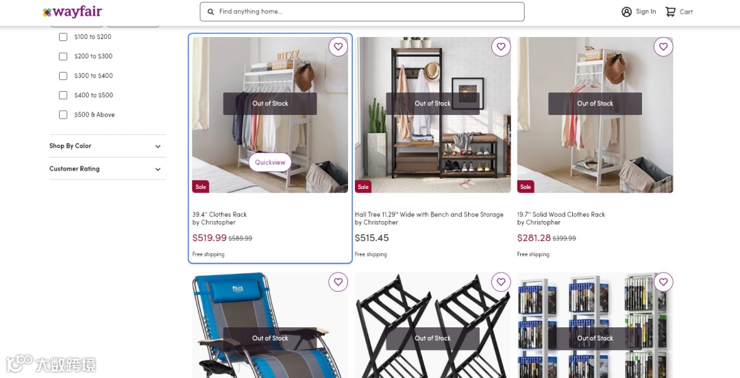 家居平台Wayfair这边跑得更快,Christopher的产品基本上都显示无库存了