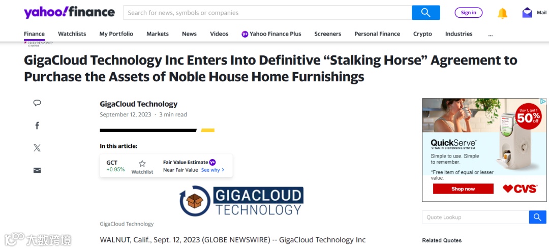 外媒报道,GigaCloud已签署“假马竞价”协议(Stalking Horse),以8500万美元的价格,拟收购Noble House Home Furnishings及其某些附属公司的几乎所有资产