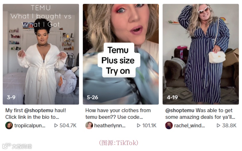 社媒声量方面,#temuplussizehaul话题TikTok浏览量近百万,单视频点击超50万。尽管博主多推荐裙装、泳装等吸睛款式,但从实际销量看,基础款仍是消费主力[1]。