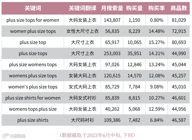 亚马逊大码上衣市场洞察