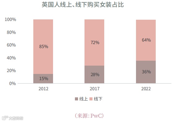 在英国,高通胀导致可支配收入下降,PwC调研显示,女性购买大码服饰时更关注价格、合身度与穿着便利性[k]。早在2016年,大码女装线上购买比例已达45.2%,远超整体女装30.9%的网购水平;至2022年,英国女装整体网购渗透率升至约36%,大码品类线上优势持续扩大[k]。