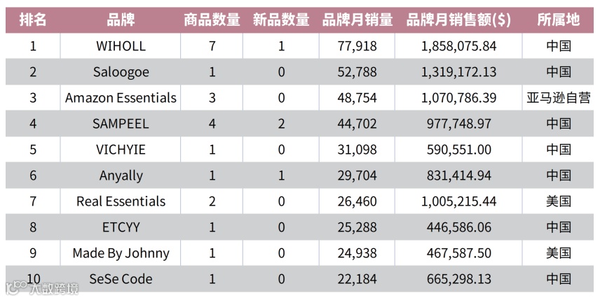 中国卖家竞争激烈,进入销量TOP100的中国卖家达87个,其中7个进入前十,除WIHOLL外多以单品突围[k]。亚马逊自营品牌尺码覆盖更广(可达6X),主打纯色简约款,满足日常穿着需求[k]。