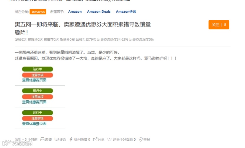 进入 Seller Central,查看所有正在运行的优惠券,重点核查:促销是否被报错、是否被隐藏、是否显示“无效折扣”。