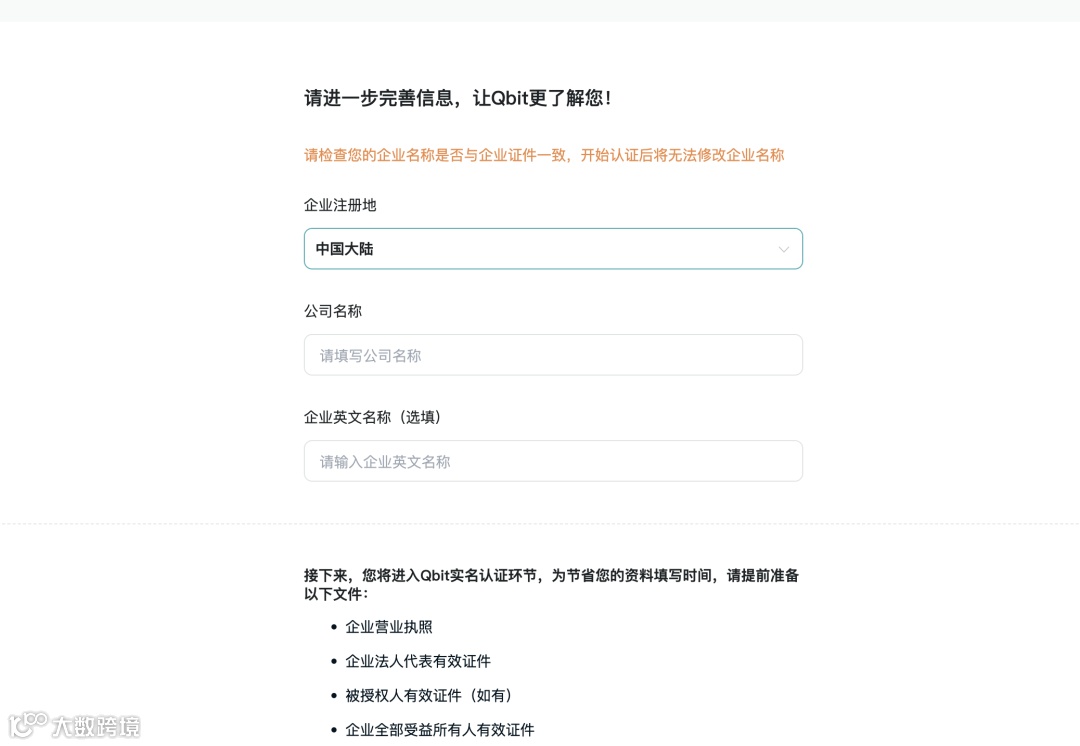 账号登入成功后需进行实名认证,实名认证主体支持中国境内企业、香港、英国,美国,新加坡企业(实名所需的资料可在页面获取具体要求)。
