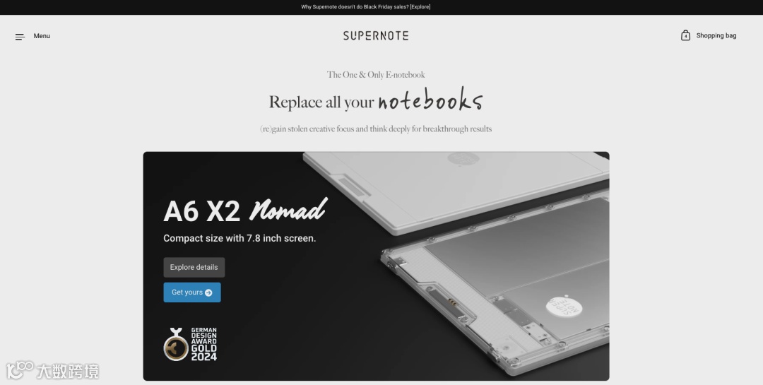 总部位于南京的Supernote主推电子纸与智能书写设备,目标用户为全球办公人群。2022年3月升级Shopify Plus后,销售额同比增长超200%,独立站贡献总销量95%以上[k]。
