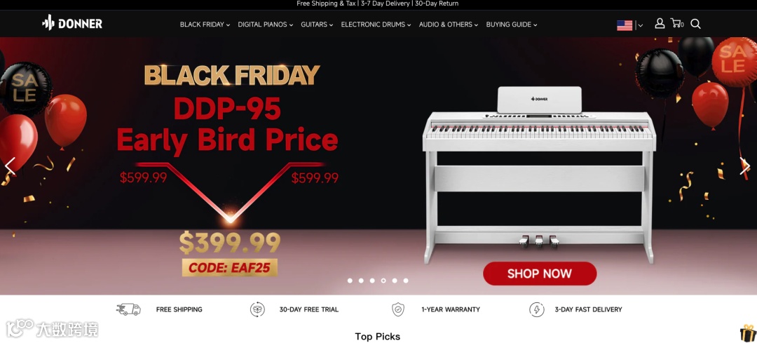 广州蓝深科技旗下品牌Donner深耕海外市场十余年,主营高性价比乐器设备,客单价超300美元,连续多年位列亚马逊垂类销量榜首,并获得IDG资本、安克创新近亿美金融资[k]。