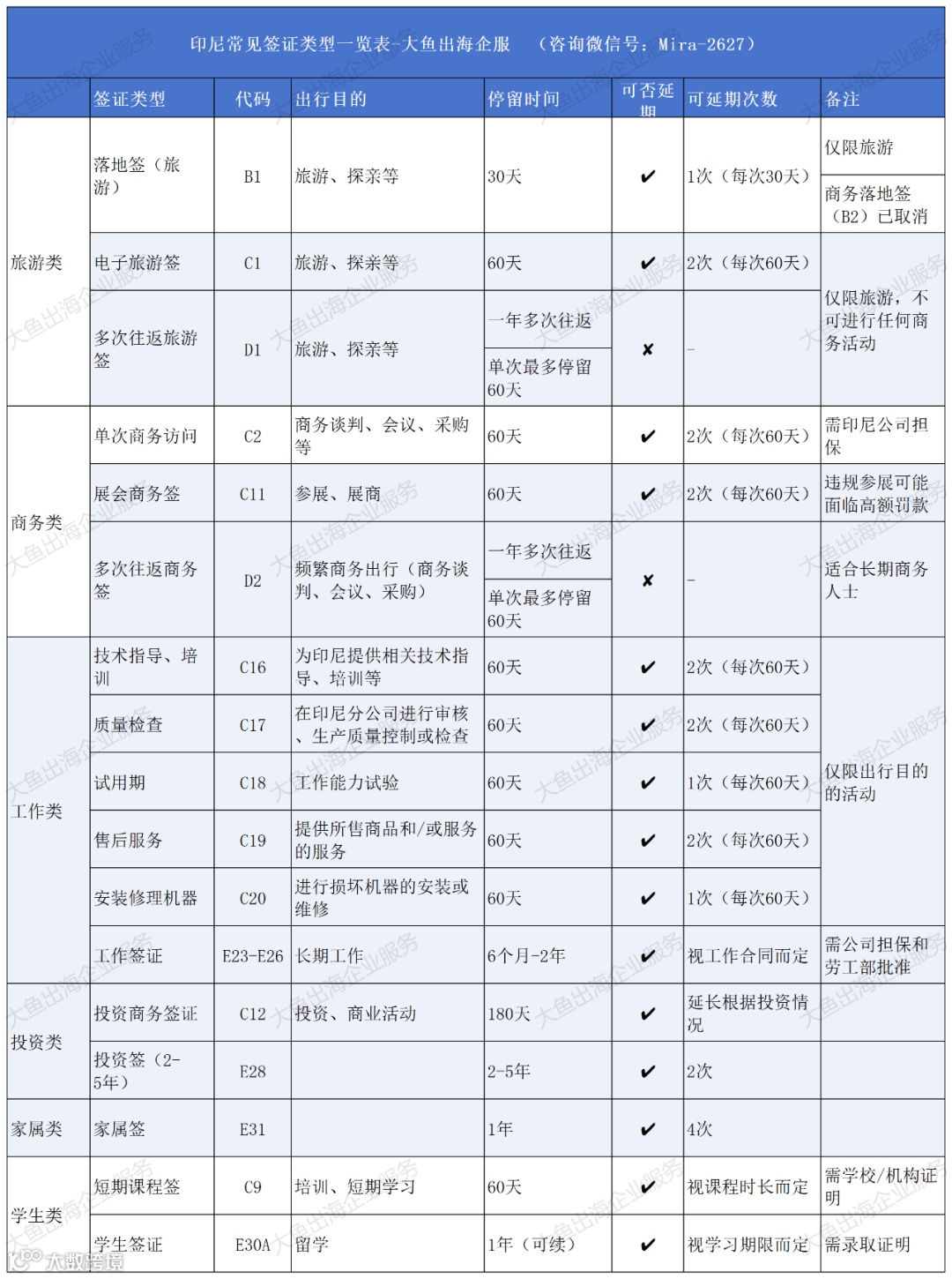 印尼现行签证体系主要包括落地签、商务访问签(C类)、工作签、投资签、家属签等。2024年以来,签证分类进一步细化,不同签证对应不同入境目的与停留期限[k]。