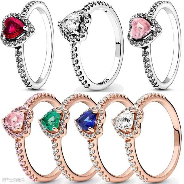 925 Sterlng Silver Ring Elevated Red Heart With Colorful Crystal Rings For Women Valentine's Birthday Gift DIY Jewelry