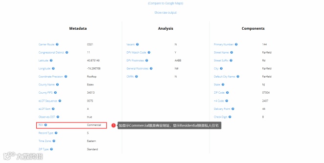 判断一个美国地址是商业地址还是住宅地址,可通过在线工具SmartyStreets进行快速查询[k]。