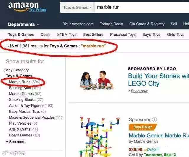 由于结合了动态运行与结构搭建,Marble Run被视为STEM教育(科学、技术、工程和数学)的理想玩具之一。以美国亚马逊为例,搜索“marble run”可找到1361种相关玩具,其中专门的Marble Runs分类就有504种,此外还有Building Sets建筑套装(106种)以及Marble Games滚珠游戏(82种)等细分品类。