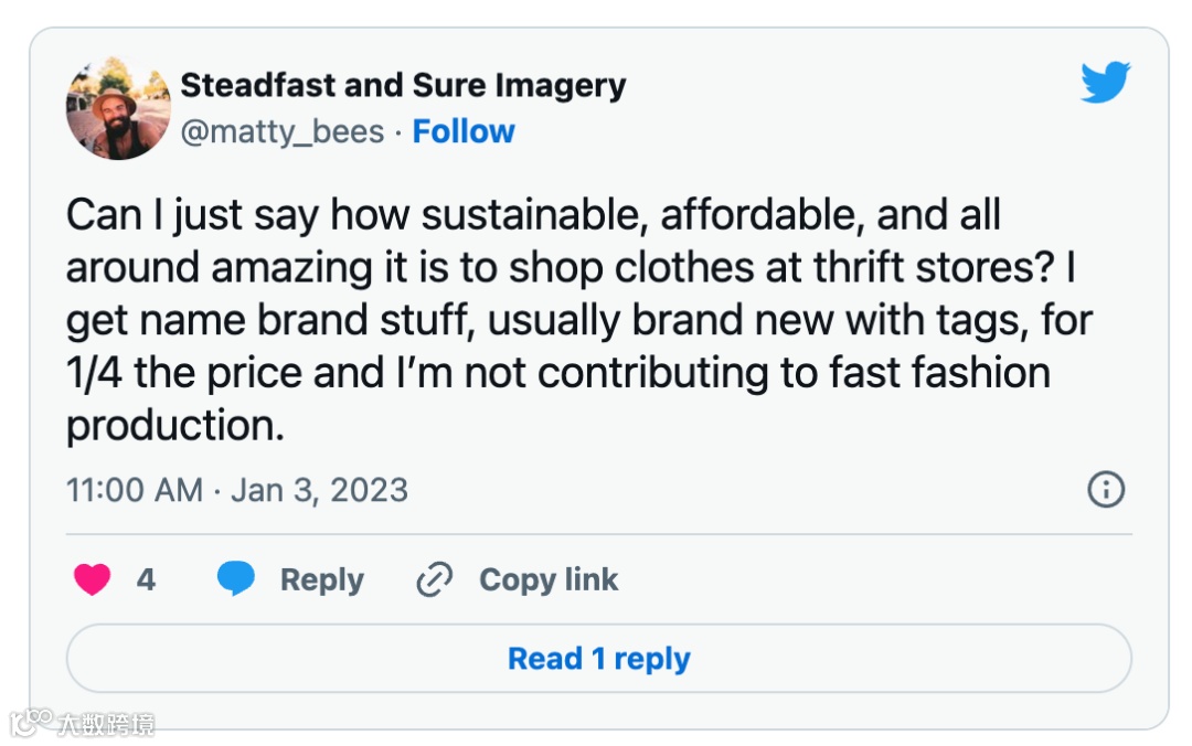 时尚精们并不会因为预算减少就放弃购物热情,而是转向一些替代方案,通过购买二手产品,消费者仍可以获得喜爱的品牌,同时也算支持了商品的可持续性。不仅如此,消费者还热衷于在网上分享如何以划算的价格拿下大牌,买二手甚至成为了一种流行。时尚行业一直被环保人士所诟病,也许把握好二手市场是时尚品牌跟消费者建立信任的一个好契机。