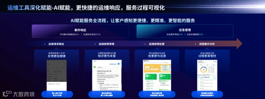 为提升现场人员和用户在新技术、新架构下的运维能力,我们充分开放移动学习端,在研发技术端开放超4万+视频文档、业务流程端开放超1千+视频文档、产品运维知识开放5万+条。在运维需求响应和应急快速提升方面,以AI技术赋能运维,从事件提出、事件受理、事件处置以及运维需求状态几个环节进行自动预警分析,提高整体运维效率。此外,用户可利用全流程可视化的需求状态仪表盘,充分了解需求的处理环节和当前进度,感知到更便捷、更精准、更智能的服务。