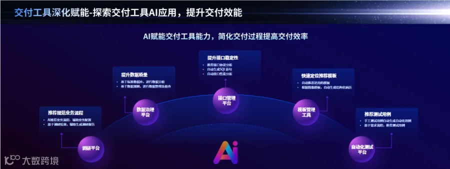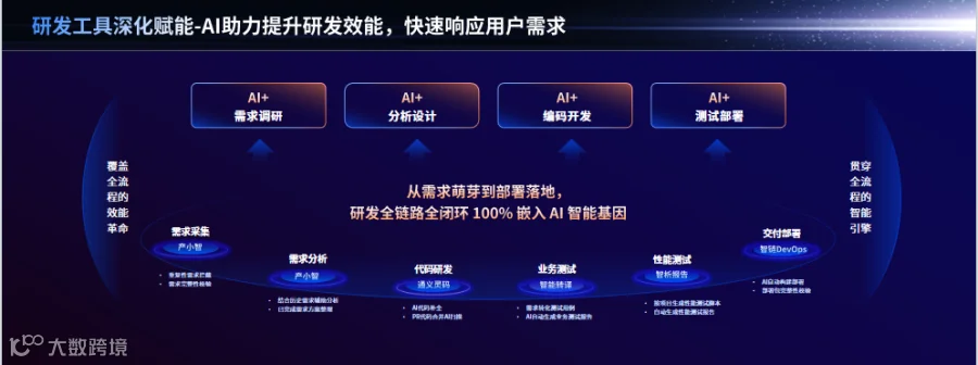 在交付工具赋能方面,研发工具、交付工具、运维工具全面升级,探索AI全维度赋能。
