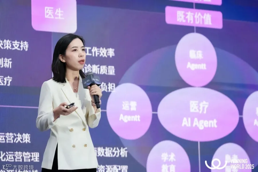 IDC高级分析师林红在会上发表了《AI+医疗趋势:从工具到伙伴的智能化跃迁》主题分享。她指出,几乎所有组织都在走向AI驱动的商业模式。在此背景下,医疗大模型持续迭代,医疗AI加速向Agent演进,并从1.0时代迈向2.0时代。