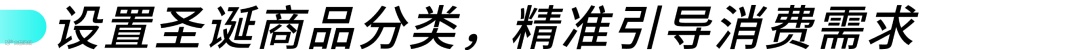 在店铺首页创建“圣诞礼物”“圣诞装饰”“圣诞美妆”等专属分类,帮助消费者快速定位目标商品,缩短决策路径,有效提升浏览转化率。