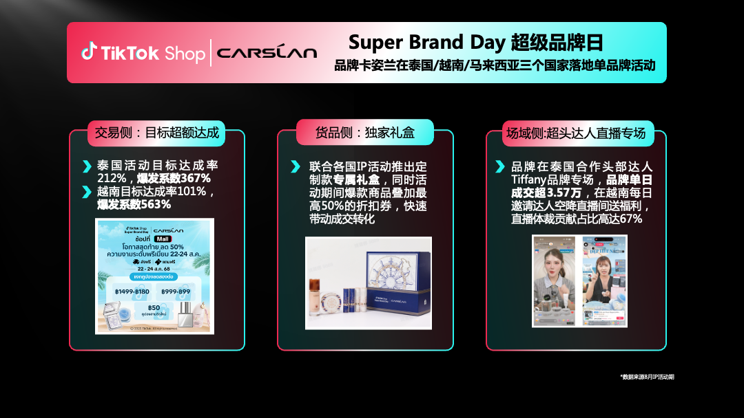 在越南市场,携手头部达人zhuzhu打造品牌溯源直播专场,并依据实时数据动态优化货品策略;专场结束后由品牌自播及时承接流量,实现日均业绩稳定在约8000美元,成功打开从0到1的新市场。