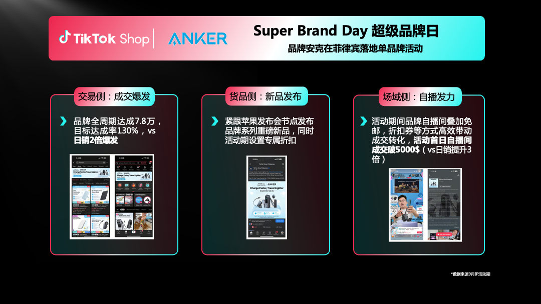 ANKER紧抓苹果秋季发布会行业热点,在全球同步首发年度重磅新品,同时参与菲律宾「Super Brand Day」IP活动,通过活动货品补贴和站内多点触达,精准承接科技爱好者与苹果用户关注,叠加专属折扣、“18个月超长保修”等权益,降低决策门槛,实现新品声量与销量的同步提升。
