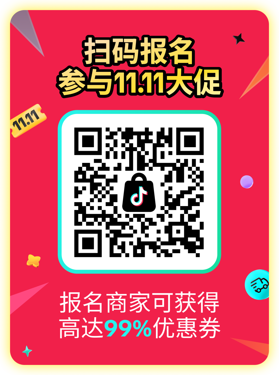 11.11大促作为 TikTok Shop 年度核心战役,商机转瞬即逝!当前大促备战已进入关键阶段,别再犹豫,马上锁定11月1日至11月11日的黄金机遇期,扫描上方二维码,即可一键报名参与11.11大促,搭上大促爆单快车!!⬆️