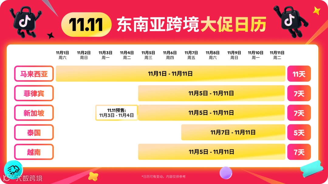 各位商家朋友,可参照上图各市场的活动节点,积极参与大促期间的各类玩法与项目!尤其别错过11月1日至11月11日的11.11大促黄金期,助力您实现业绩的全新突破!🚀