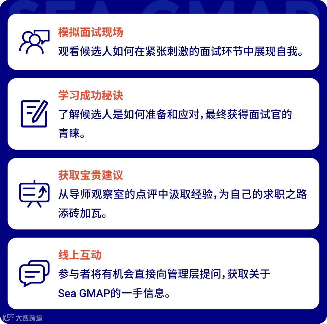🌟 想要一窥Sea GMAP的面试幕后吗?今晚的空中宣讲会将模拟面试现场,带您亲眼见证候选人的出色表现和导师的精彩点评。快来看看他们如何一步步赢得那份令人心动的offer吧!