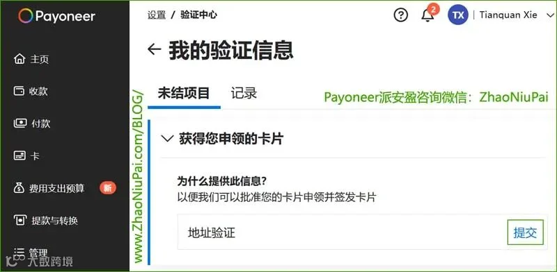 ▲Payoneer派安盈要求地址验证